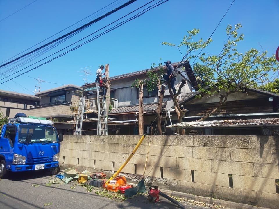 住んでいない管理ができていない木を伐採しました。チェンソーを使うので、音がでます。近隣に迷惑かけないよう、速やかに1日で終わらせました。