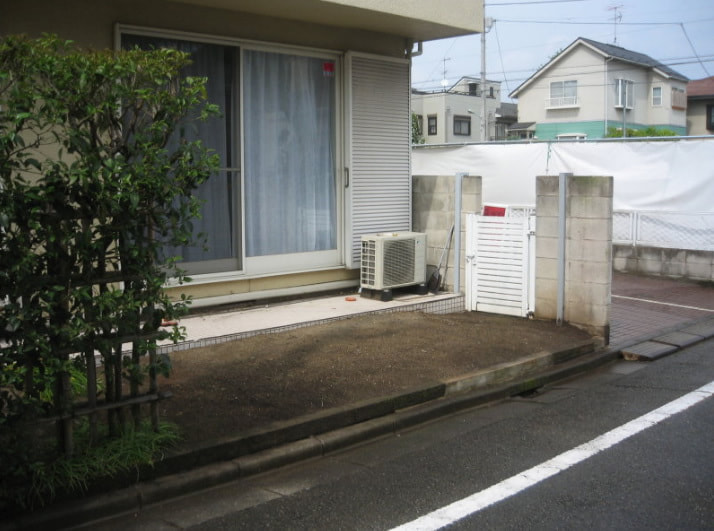 車を横付けしての出入りです。まずは生垣を撤去して、これから徐々に門を付けたりスロープなどを検討していくそうです。