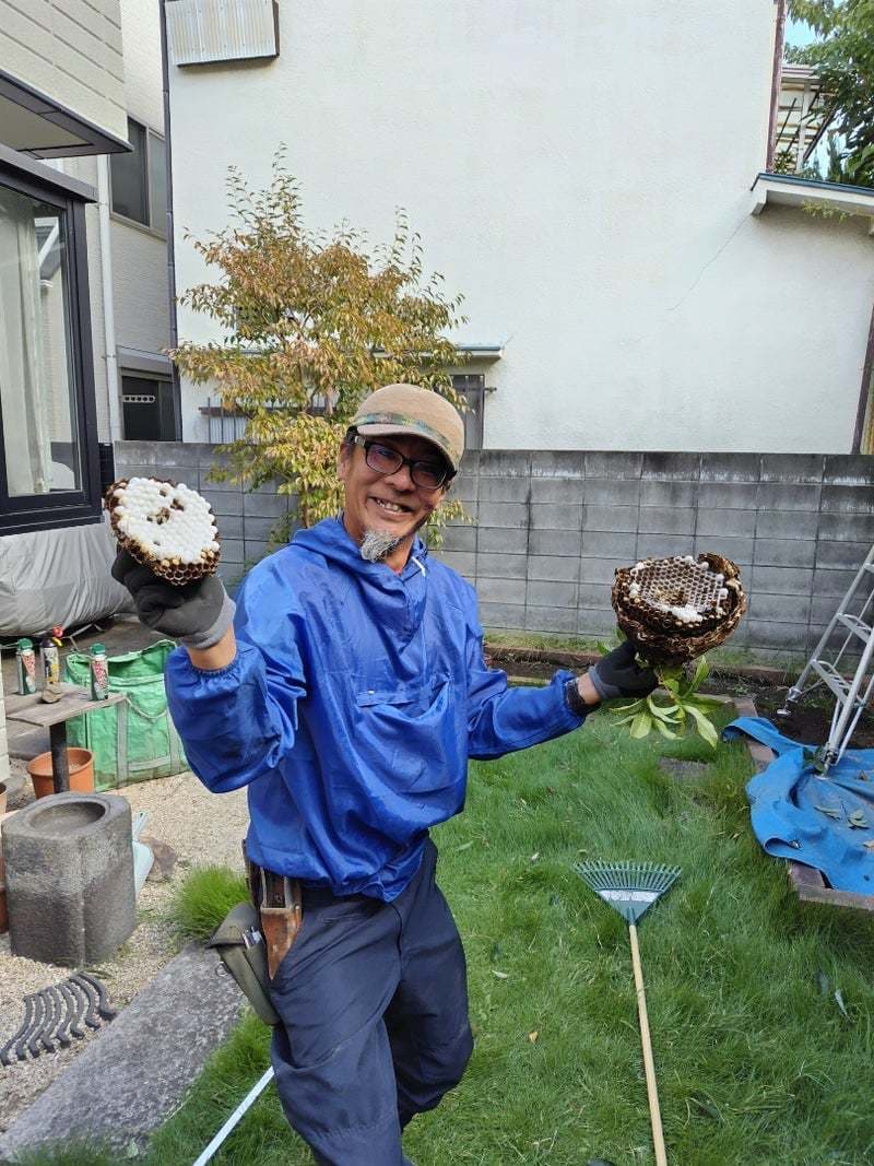 お庭のスズメバチの巣駆除