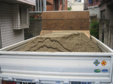 川砂の登場です。ネコに載せ運び、川砂投入です。