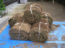 こちらの芝は厚みもあり、芝生の色も凄く良くピカピカしています。今はホームセンター等で芝生が手に入りますが、弊社の芝生はゴルフ場等に使用されている良品です。つくば市は芝生の日本一の生産地で新種の芝生の開発も盛んです。良品質の芝生のブランドです。