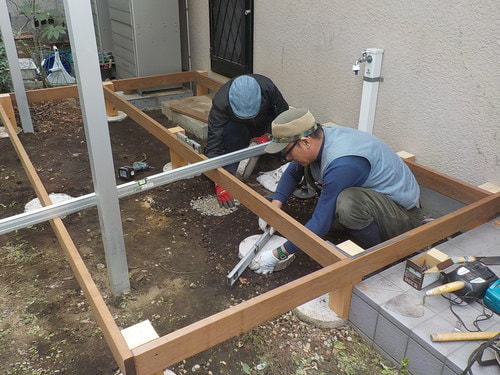 今回の依頼内容は、洗濯物が干しやすいように、高さがあるウッドデッキが作れないか依頼されました。材木は、柱が檜、貼り付けた板はイペを採用。とても固くしっかりした材で、仕上がりも綺麗な色あいです。