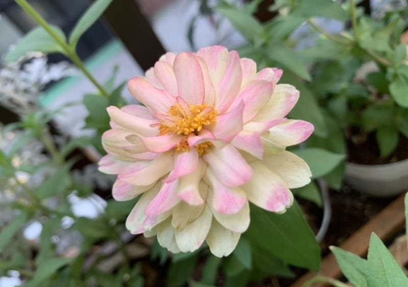ジニアのザハラ。暑いので色が褪せぎみですが、ふんわりとした優しい色のグラデーションです。