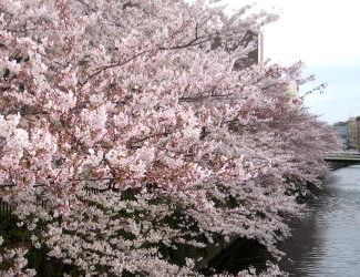 町を歩いていると桜の花が満開で綺麗に咲いています。この画像は、会社の裏にある呑川の緑道です。毎年この時期になると、素晴らしい花を咲かせています。