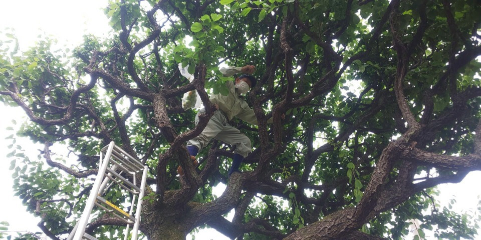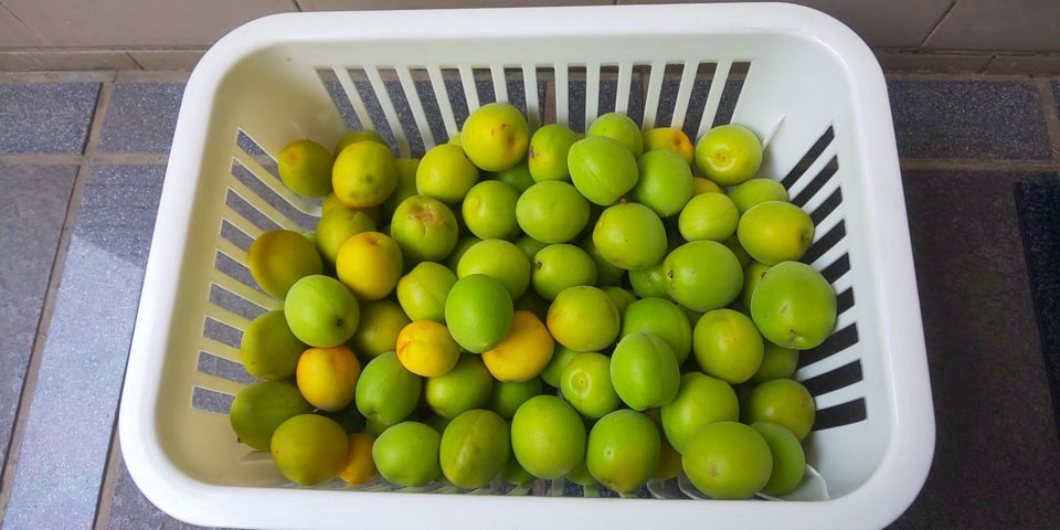梅の実は、ジュース、梅酒、ジャム、梅干しになります。お客さまが木が大きくて、収穫出来ないとご依頼を受けました。私達は、色々な大きさの梯子を持っています。今回は、3.6メートルの梯子を使いました。(4メートルまで伸ばすことが可能)。ひとつひとつ落とさないように、丁寧に収穫しました。