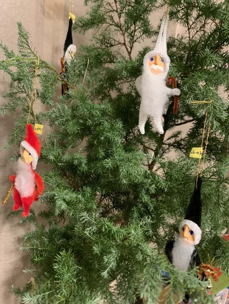 こちらは、サツマスギとサンタさん。サツマスギ、はじめて耳にしたのですが、大阪ではサツマスギ、関東ではヒムロスギと呼ぶそうです。枝や葉が柔らかくて、リース等にもとても扱いやすいです。