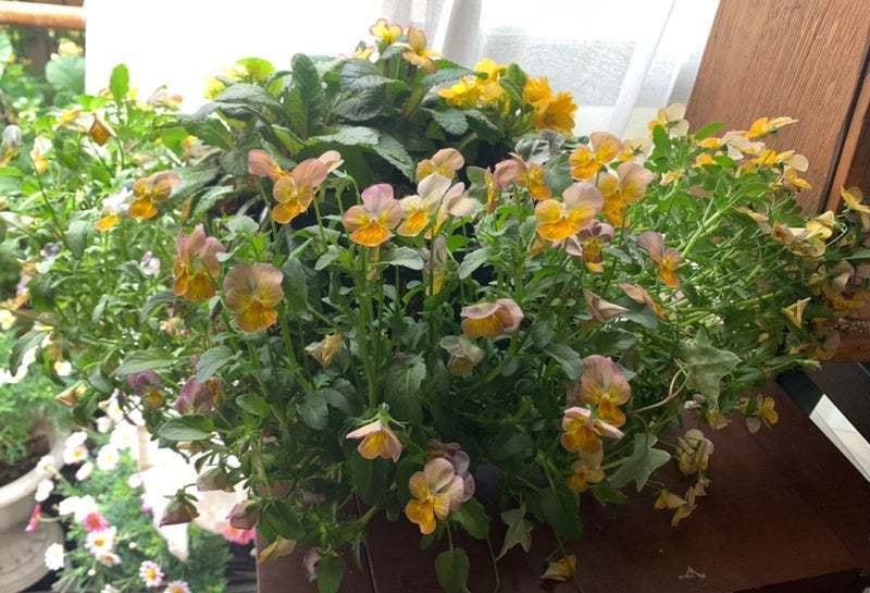 最終的にアリッサムはビオラの陰になり、消えてしまいました。プリムラもそろそろ終わり、ビオラのみが元気に咲き続けています。