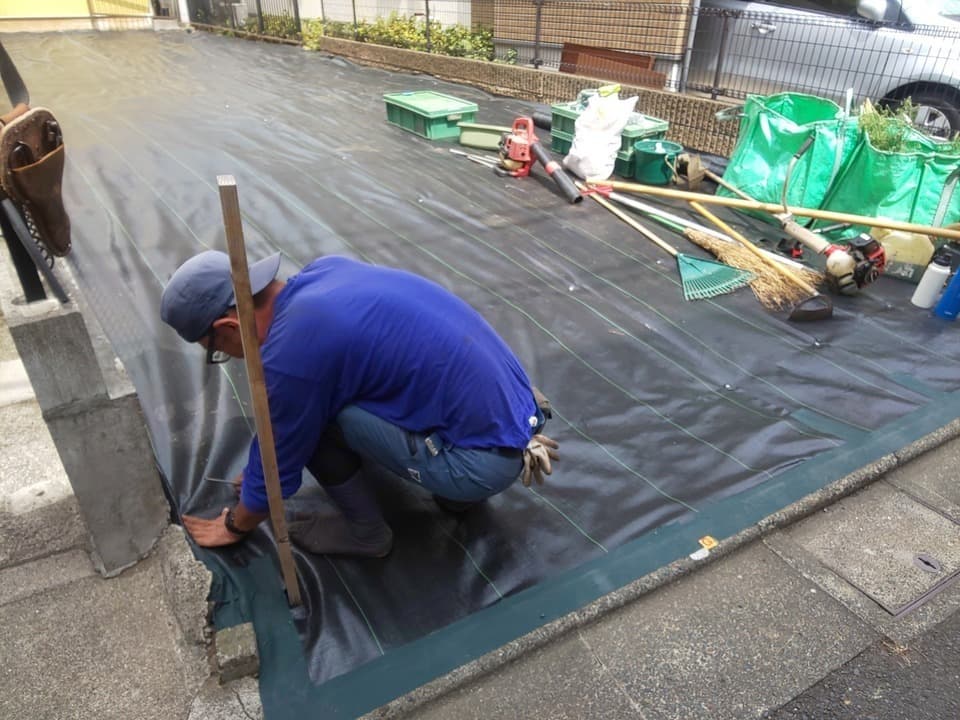 草が伸び放題、苦情もあり、今後草が生えないように、防草シートを敷きました。