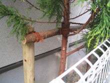 コニファーの形を整え、支柱強化。