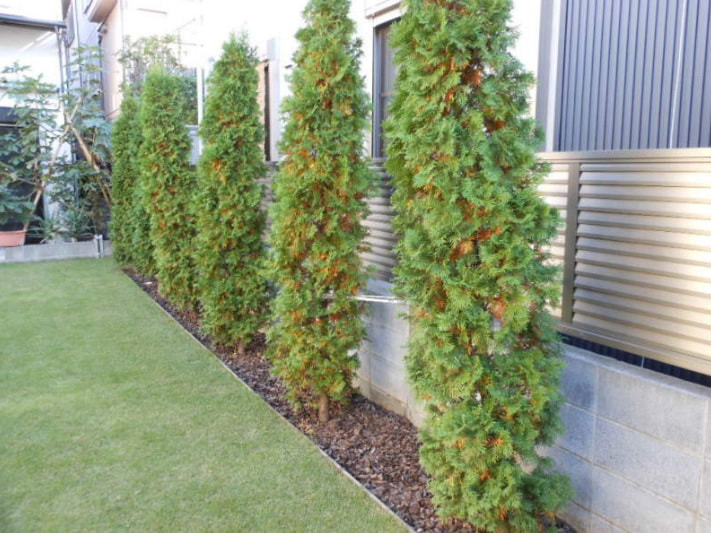 ゴールドクレスト(※総称コニファー)は、頭が重くなり倒れることが稀にございます。年に2回くらいは剪定をし、形を整え維持していくことが必要です。※針葉樹。一般的には外来種を中心とした園芸用の品種を指します。