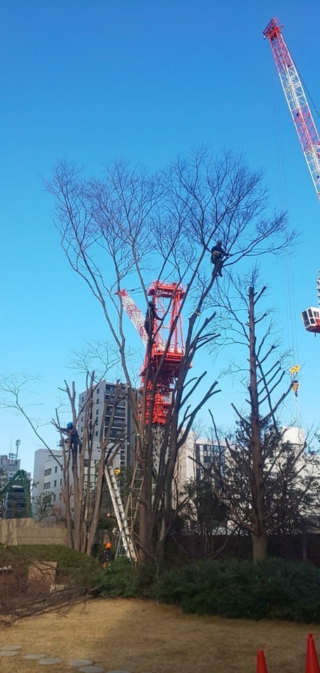 欅は新緑、紅葉のみならず箒状の樹形があらわになる冬季の佇まいも美しく、街路樹や屋敷の防風林、建築材です。日本を代表する巨木の一つです。大きくなったので、強剪定を依頼。特殊な命綱を使い、慎重に剪定しました。安全のためのロープワークが重要でした。強く剪定したので、欅には、大きな負担だったと思います。春、新芽が芽吹き、すくすく成長する事を願います。