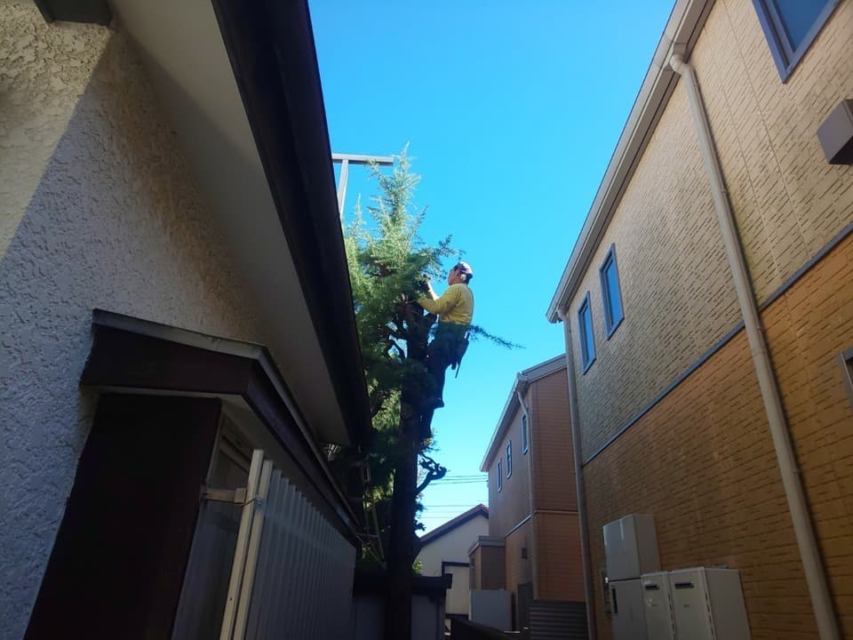 越境枝の剪定作業