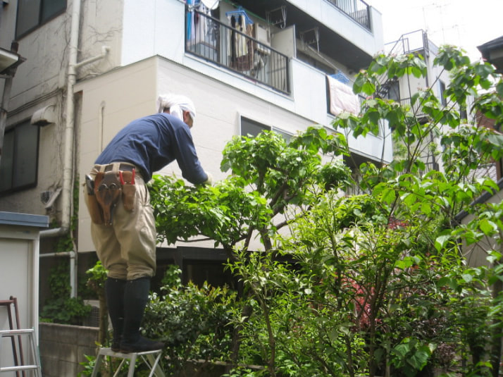 今回はハナカイドウ、山茶花、キンモクセイの剪定依頼です。