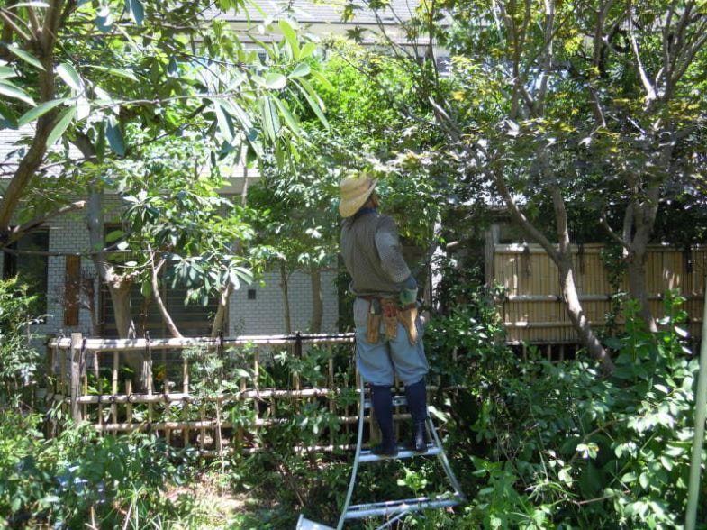 こちらは園庭のお手入れのご依頼です。土日に作業を行いました。こちらの幼稚園はキウイ、グレープフルーツ、梅、ヤマモモ、さくらんぼ、ザクロ、マテバシイ(シイの実)等の果樹や花を楽しむ樹木も沢山あります。
