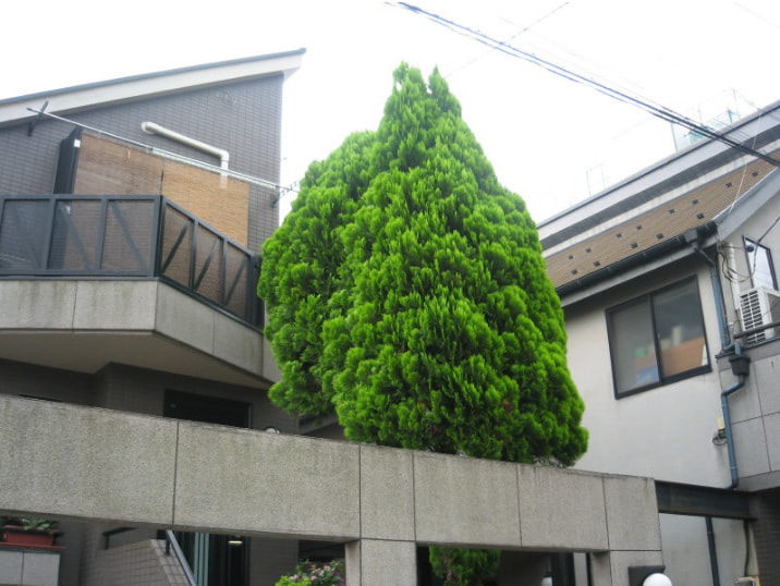 コノテガシワが大きくなり過ぎました。頭が重いと、台風などで倒木の危険性がありますので、小さくしました。お困りなことがございましたら、どうぞお気軽にご相談ください。