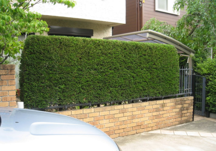 今回は、丸みを帯びた生垣に仕上げました。生垣に丸みを付けると柔らかく感じます。