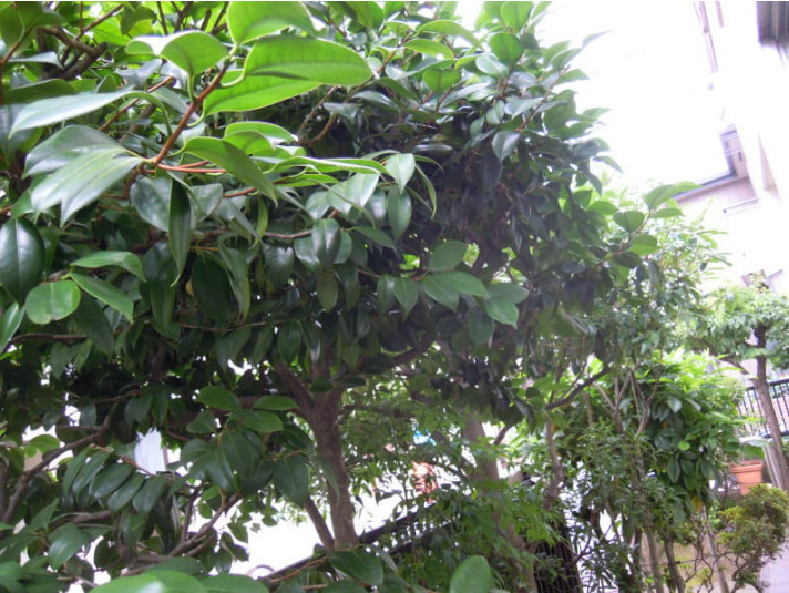 枝が込み合っているようなので、椿、モッコクは枝抜きをし、透かします。枝抜きとは