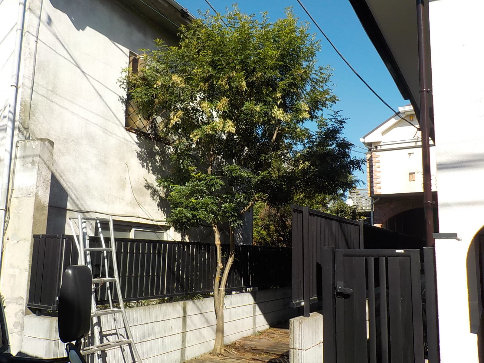 洋風なお庭やシンボルツリーとして活用されるのがシマトネリコで、その剪定です。半常緑高木でとても丈夫。成長も早いので剪定のご依頼を多く受けます。自然樹形を崩さないように剪定しました。