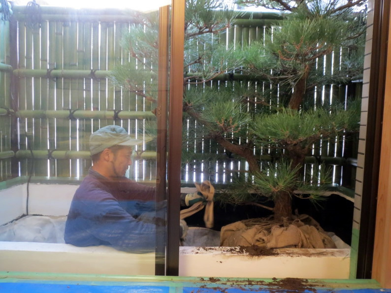松を植栽作業中。