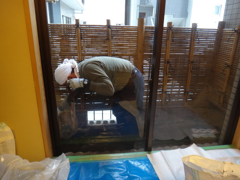 養生が完了し、既存のお庭を解体します。