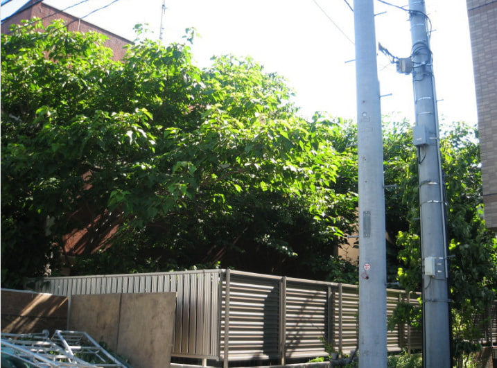 空き家になった樹木が伸び、ご近所からクレームが出ましたので、伐採のご依頼です。道路とお隣に枝がはみ出てしまっています。樹木が荒れていると、ポイ捨てする人が出てきます。火事の危険もありますので、早急な対応が必要です。