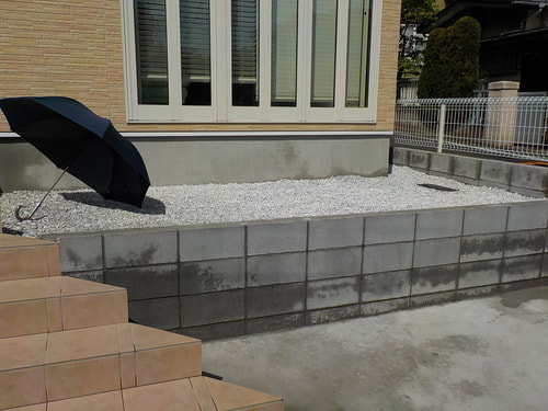 今回お世話になっているリフォーム屋さんから外構工事の依頼を受けました。既存のブロック塀が年数が経っていたこともあり、地震対策で低く積み直しました。さらに、家の外回りをデザイン。機能性を上げるために(名残惜しいですが)、石柱を撤去。お客様のお好みで、赤ポスト・クリーム色の伸縮門扉・スチールメッシュ型フェンス・インターホン柱を設置。花壇が作れるスペースも作りました。
