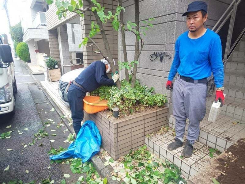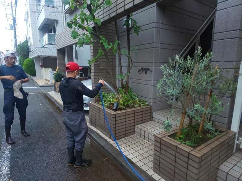 (仕上げの水やりと現場の清掃)