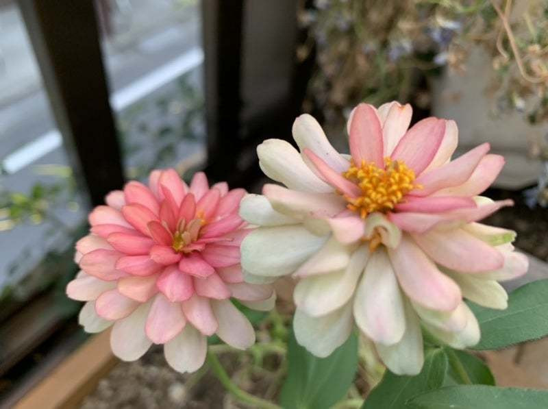 ジニアのザハラ。暑いので色が褪せぎみですが、ふんわりとした優しい色のグラデーションです。