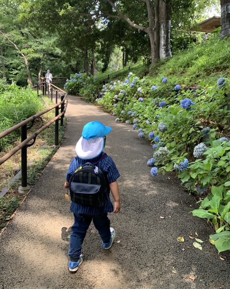 息子との親子遠足で多摩川台公園に行ってきました。木々がとても瑞々しく、庭園のお花や、散歩道沿いに咲く紫陽花が、とても綺麗に咲いていました。