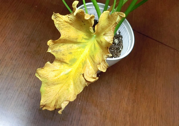 生育期を迎える4月上旬、自宅のセロームの葉が一枚黄色くなりました。まだ育て慣れておらず、どうしたものかと。葉の色素が抜けるのは体調不良のようです。何が原因なのでしょう。思い起こすと、ここ数日で過度な環境変化(ストレス)がありました。