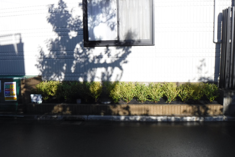 先日、戸建て玄関前の花壇の植え替えをしました。奥には斑入り葉の馬酔木を、手前には花々を植えました。春にはチューリップを植えたいとプランがあるそうです。四季折々の草花で、ガーデニングを楽しんでいただけたらと思います。