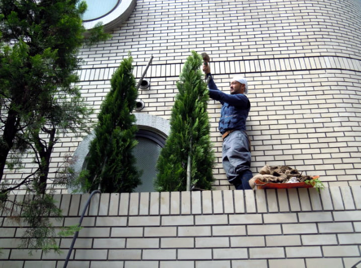 今回は枯れてしまったコニファーをエレガンテシマに植替えのご依頼です。新しく植栽するエレガンテシマです。まずは残っている根を掘り取ります。腐葉土を混ぜます。たっぷりと水をあげます。水決めです。支柱に使う棕櫚縄と、スギ皮を用意し、支柱を立てます。最後に棕櫚縄で結んで、作業終了です。