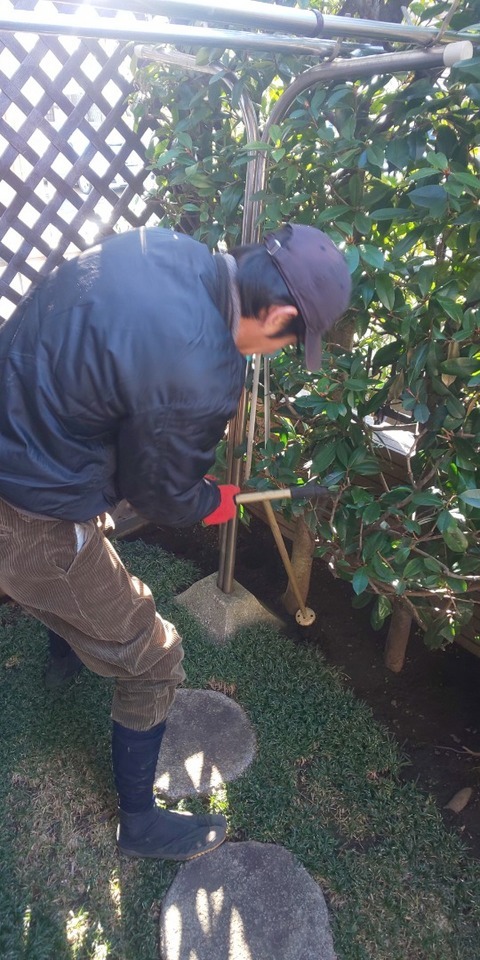 こちらは寒肥作業のご依頼です。寒肥とは1~2月の寒い時期に植物に与える肥料です。寒い時期に植物の生長はほとんどありません。土の中で植物が吸収されやすい形に変わり、春の生育期に効きめを表します。