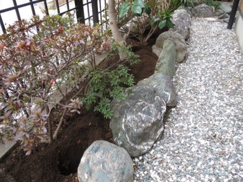 冬は植木へのダメージが少ないので施肥に最適な季節です。生育をよくするために行います。春には栄養が行き渡り、花芽などの増加につながります。寒肥をしているお庭は、花の色がとても綺麗です。植木達も喜んでいます。
