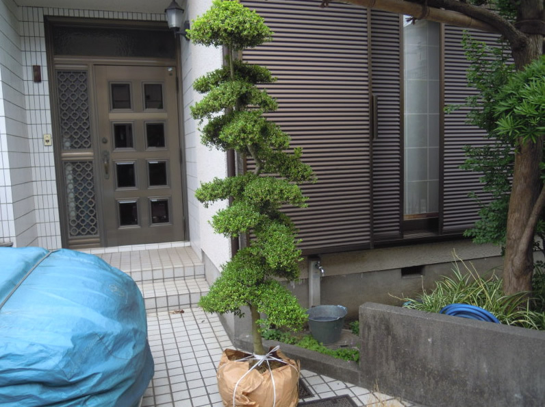心地よい空間になりました。こちらは、安くて仕立物の植木を植えて欲しいとのご注文でした。近年、東京では仕立物の需要がなく、作っている方がいなくなっております。ですので、千葉まで畑を周り、見つけてきました。ご希望の樹木がございましたら、私共が見つけてまいります。