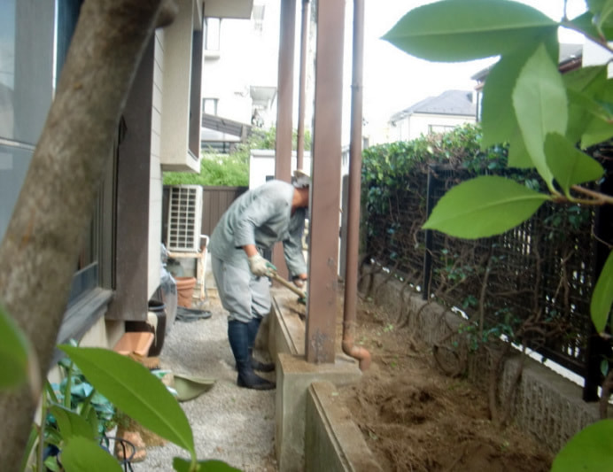 土壌改良のご依頼です。元気のないサツキを抜根し、土壌改良しました。今後はお客様ご自身でお花や野菜を育てて楽しみます。