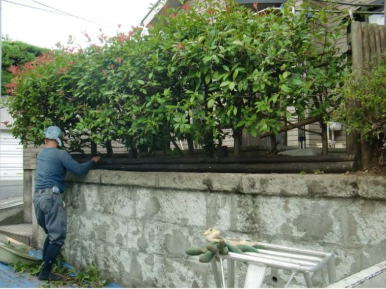 こちらは、除草と土留め修復のご依頼です。土留めとは高低差のある場所で、土が崩れてこないよう止めることを言います。台風時の水の流れを止めるのにも役立ちます。
