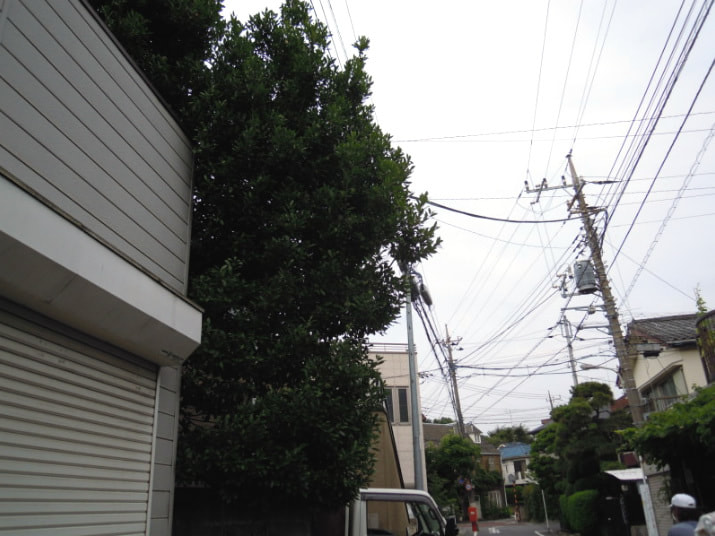 月桂樹の生垣は立派です。今回は高さを抑え剪定しました。
