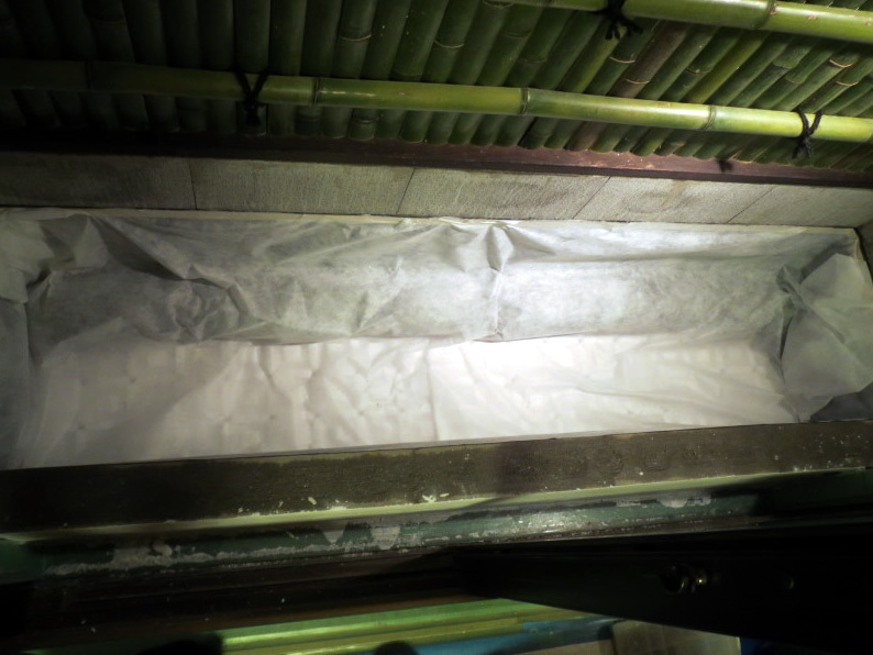 作業開始、まずは室内を通るので、しっかりと養生します。