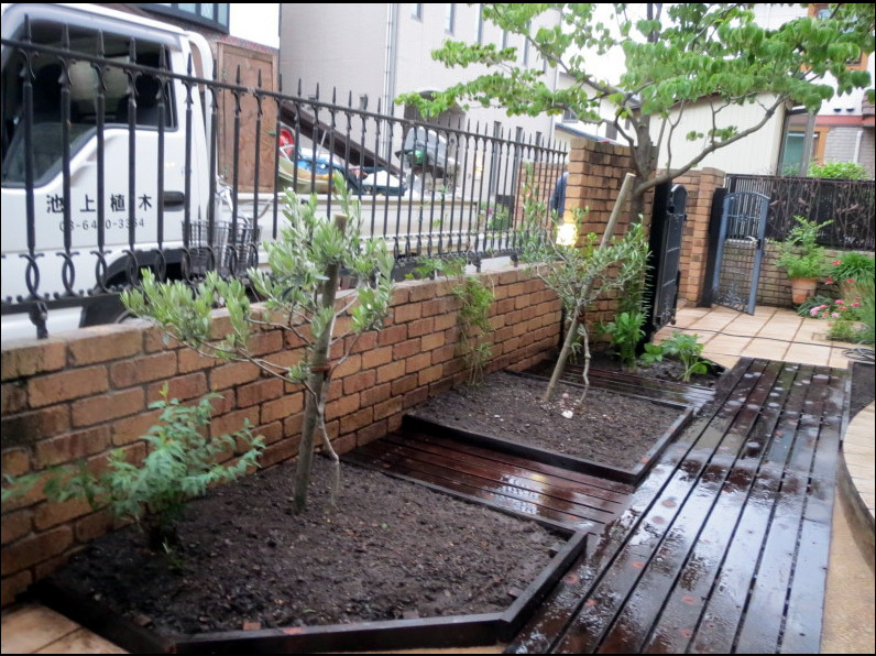 植木鉢で育てていたオリーブを2本を、地に下ろしました。