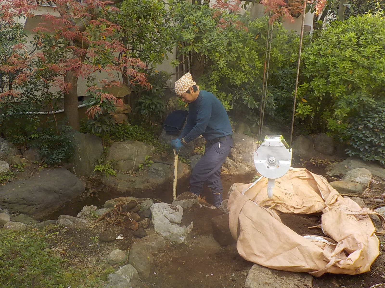 石組みがあり面影がありましたが、土で埋もれている状態からの工事です。