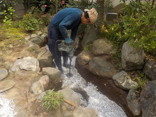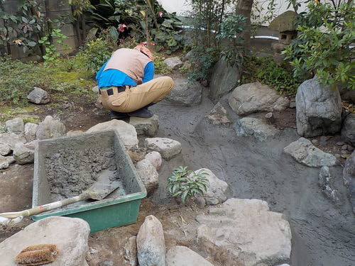 池の復旧作業
