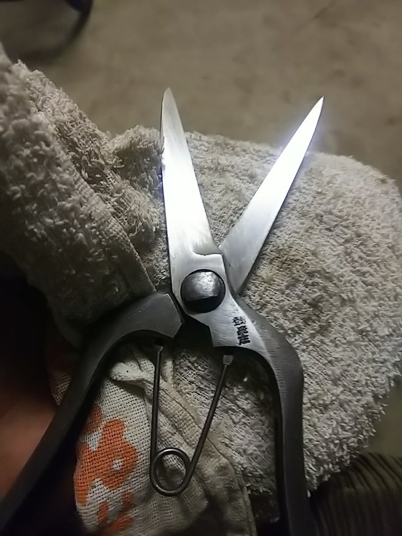 ステンレスではなく鍛造の鉄製なので雨に打たれたりすると錆びてしまいます。また汚れが付着した状態で使用を重ねていますと、草木に悪影響を及ぼしかねない菌をお客様方が大切になさってる植木達に感染させてしまう恐れも出てきてしまいます。なので定期的に道具にも手入れが必要です。